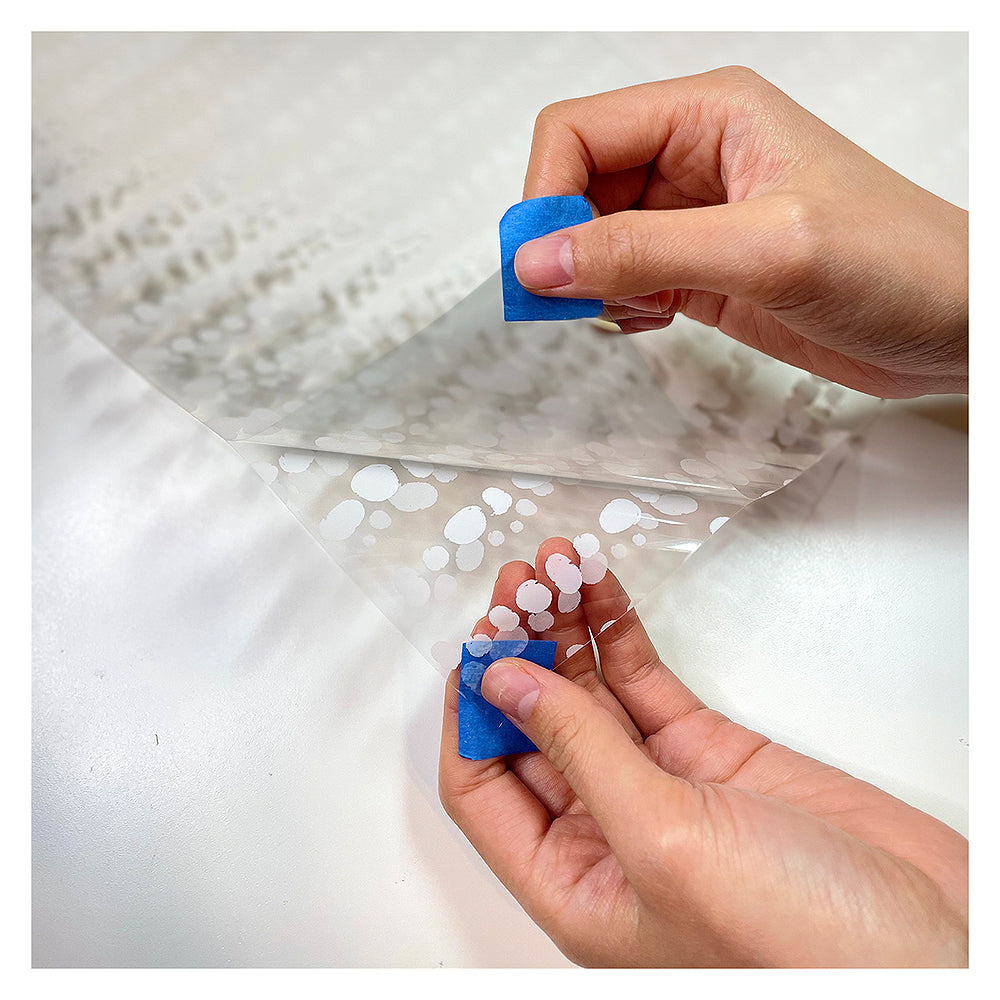 Lines of little circles weaving in and out of each other. The pattern continues down the entire roll of film.