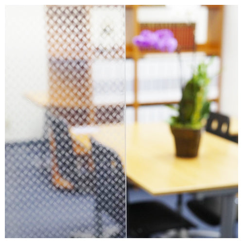 Alternating diagonal lines that achieve a crosshatched pattern. Each junction is approximately 11 millimeters apart.